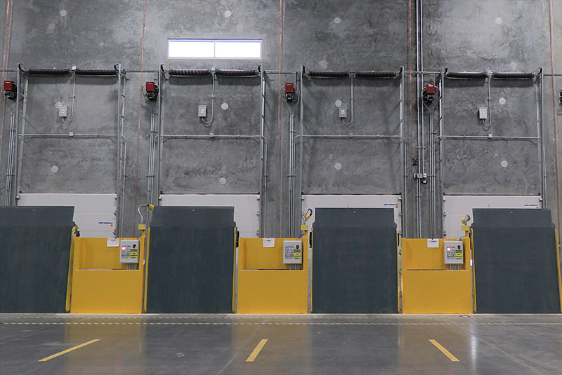 Vertical levelers are most often used in food warehousing or food processing facilities. These units store vertically allowing the overhead door to seal tightly to the pit floor reducing outside air infiltration and increasing pest control. Vertical levelers can also allow the swing doors of semi-trailers to be opened inside of the building. They are the easiest levelers to clean around and inspect. Our dealership network sales force can work with you to find the leveler design which is best suited to your needs.