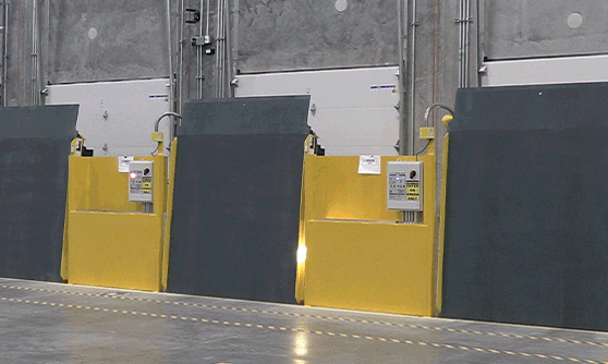 Truck restraints are the best way to protect your people from the dangers of a truck leaving the loading dock prematurely. Truck restraints help communicate the loading and unloading process to the truck driver as well as preventing a truck from leaving the dock while loading and unloading are still taking place. Truck restraints are available as both active and passive style restraints. An active style restraint removes the gap between the trucks rear impact guard and the restraint while a passive restraint is a simple barrier to the trucks rear impact guard. Restraints can be interlocked to powered dock levelers forcing your people to use the restraints and providing the safest environment for loading or unloading a truck possible.