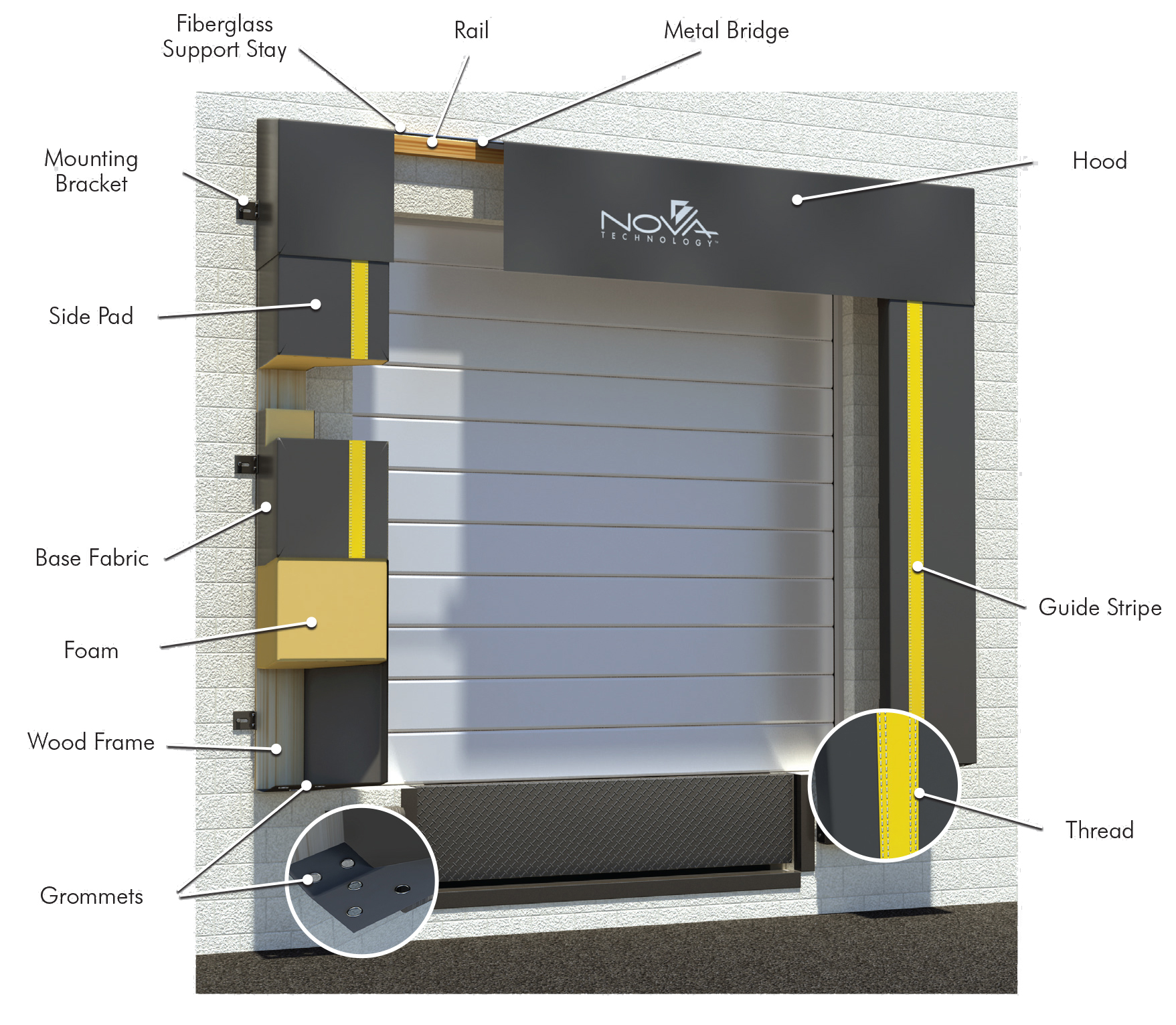 FPU Series Dock Seal—accommodates larger doors and features foam-filled head and side pads that provide a positive seal. The tight, energy-efficient seal between the trailer and dock wall protects the dock from inclement weather, dirt and insect infiltration.