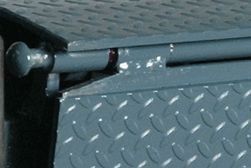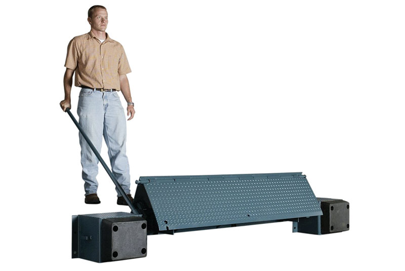 The MEDLF Series edge of dock levelers are low cost units meant for a captive fleet of trucks with a similar bed height. They normally mount to the face of the dock and can be placed in a small recessed pit. This is a light duty low cost alternative to the in pit style full size dock leveler. Also used when a pit cannot be utilized or as a retrofit. The “MEDLF” Series is typically used in an environment with minimal difference between trailer bed and dock and the unit is typically mounted to the dock face. Operation is a two step process with a “lift free” handle to place the unit in the trailer.