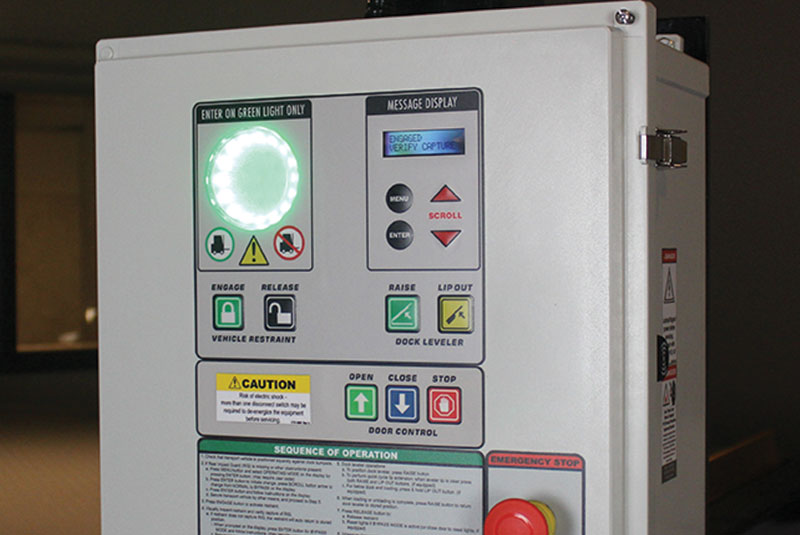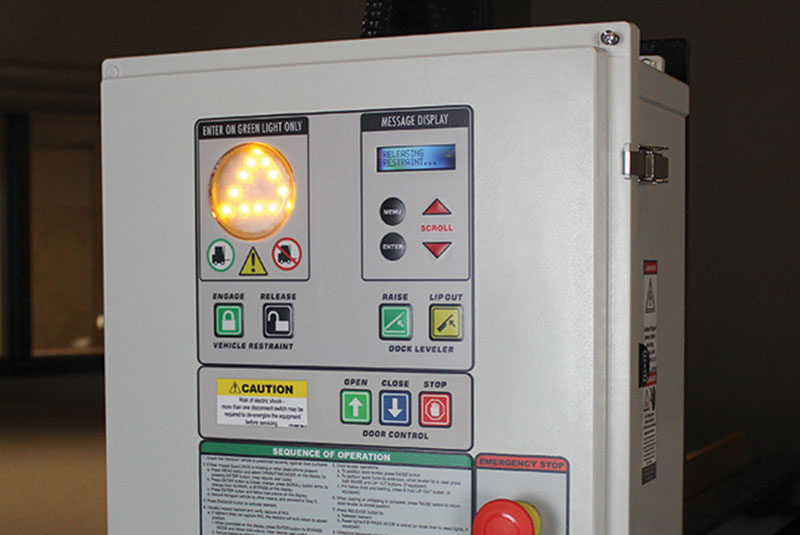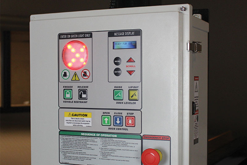 Reliable loading dock levelers and vehicle restraints from McGuire can now be equipped with iDock® Controls.  These technologically advanced controls provide an efficient interface with membrane dome button technology for ease of use and an interactive message display for valuable equipment usage, instructions, notifications and other information.  iDock Controls also have a 3-color light communication combined into one large LED light assembly to clearly indicate the conditions of the dock.