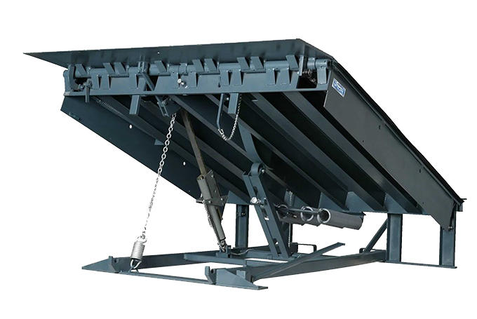 Mechanical levelers use a pull chain activation to raise the deck. The operator simply walks the deck back down to the bed of a trailer or to a stored position. These levelers are equipment for extreme float conditions.