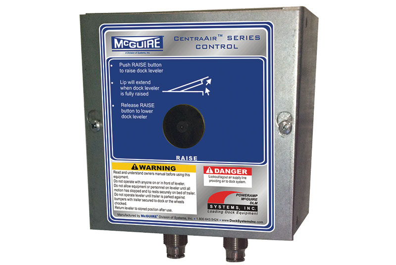 The McGuire® CentraAir® (CA) air-powered dock leveler incorporates the use of existing plant air or dedicated compressor and an industrial automotive-grade air bellows system to raise and lower the platform. It's operated with "push button" activation and requires no electricity in the pit, making the unit perfect for wash-down applications or wet environments.
