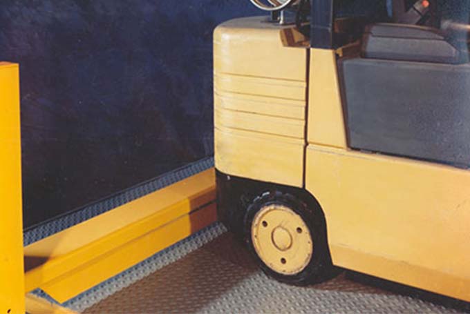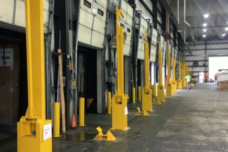 The equipment is rated to withstand repeated impacts by a 10,000 lb. load moving at 4 mph. Standard units are 12’1” wide and include stanchion, barrier arm, and receiver pocket in safety yellow for ease of recognition. Also available are customized widths and gusseted models to protect the bottom panel of overhead doors.