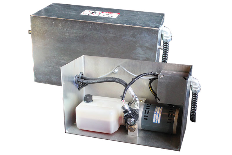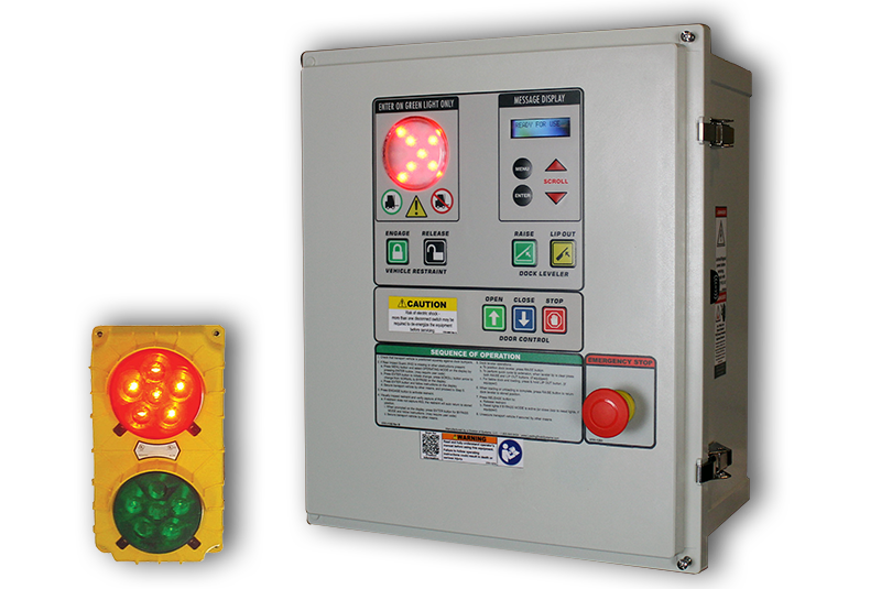 The Stop-Tite has a low profile, non-impact design for wall or driveway mount. The remote power pack allows the choice of mounting location. It can be mounted next to the restraint, on the outside wall away from the backing trailer, inside a leveler pit, or positioned inside the building for ease of service. An override selector switch, automatic light sequencing of the red/green inside/outside lights, and available interlock terminals are all designed with safety in mind.