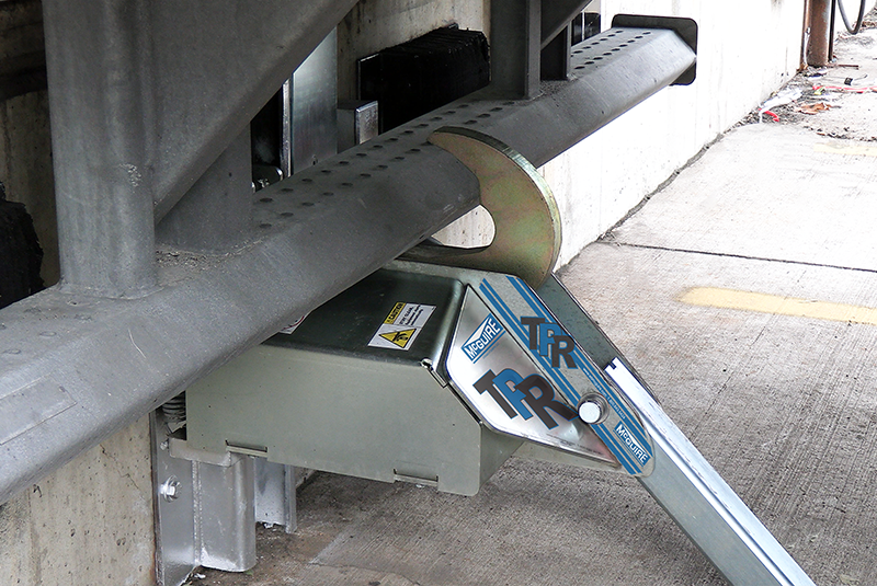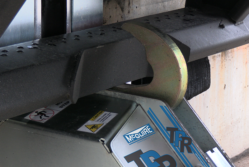 The McGuire TPR® truck-positioned vehicle restraint is designed to automatically position itself and secure a trailer’s rear impact guard (RIG) to reduce the likelihood of premature trailer separation during the loading/ unloading process.
